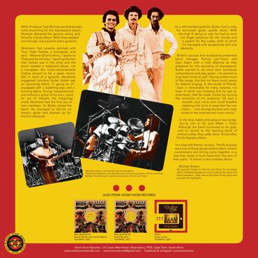 The greatest Pacific Express legacy, apart from the memorable music they made and recorded, was their role in helping establish the distinctive sounds of South African music generally and Cape Town jazz in particular. When Producer Tully McCully wanted straight, solid drumming for the Expressions album, Momple delivered the groove, swing, and drive for a funky album.” Michael Britton